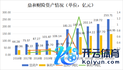 财富端来看,鼎和财险总财富与净财富均捏续高涨。2021年由于“引战”,总财富大幅上升70.73%至181.21亿元,次年净财富大幅上升125.19%至126.98亿元。本年三季度鼎和财险总财富达到了253.71亿元,较昨年年末高涨15.47%;净财富146.95亿元,较昨年年末高涨6.72%。