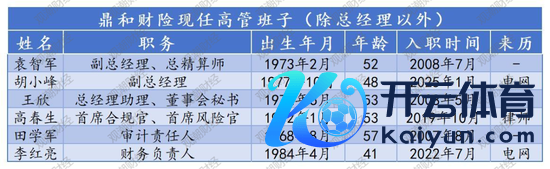 鼎和财险的高管班子较为精简,除总司理刘东之外共有6位高管,区分为:副总司理、总精算师袁智军;副总司理胡小峰;总司理助理、董事会秘书王欣;总法律参谋人、首席合规官、首席风险官高春生;审计包袱东谈主、审计部总司理田学军;财务负责东谈主、财务部总司理李红亮。