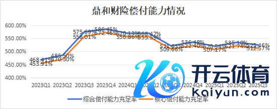 2024年第三季度鼎和财险偿付才能实足率下落幅度较大,中枢偿付才能为509.66%,较上季度末555.59%下落45.93个百分点;空洞偿付才能为521.63%,较上季度末568.47%下落46.84个百分点。
