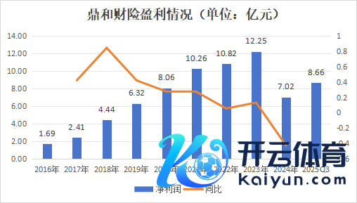 利润端来看,鼎和财险终年处于盈利景象,在2023年之前,该方针捏续增长,2023年达到历史新高,完了12.25亿的净利润,同比增长13.24%。可是,2024年该公司净利润骤降42.71%至7.02亿元。本年前三季度,该公司完了盈利8.66亿元,虽已超昨年全年水平,但距其“10020”发展方针仍有不小差距。