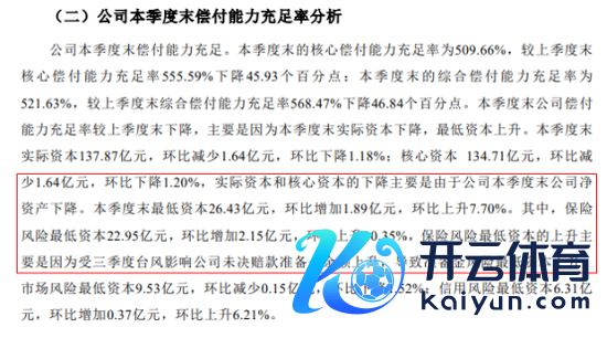 对此,鼎和财险默示,该季度偿付才能下落主如果由于净财富下落导致推行成本和中枢成本下落;受三季度台风影响公司未决赔款准备金余额上升,导致准备金风险最低成本上升。