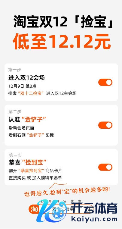 跟往年双12不同,本年的双12在玩法上有许多革命,除了优惠券除外,主要玩法为「捡宝」,整个会场即是个互动游戏场,用户通过逛淘宝发现款铲子象征,就不错捡到低至一折的宝贝。