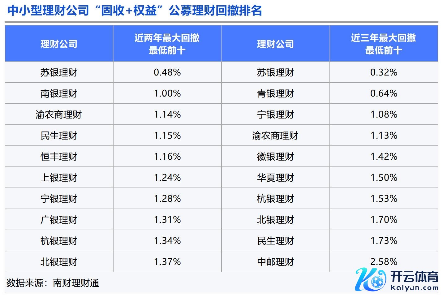 中微型搭理公司中,苏银搭理、渝农商搭理“固收+权利”居品近2年、近3年年化波动率均处于相对低位。近2年年化波动率来看,恒丰搭理、苏银搭理波动率低于0.5%,名次前十的搭理公司波动率均在1%之下;近3年年化波动率来看,苏银搭理波动率仅0.31%,抗波动才能较强,渝农商搭理、宁银搭理波动率水平也较低。