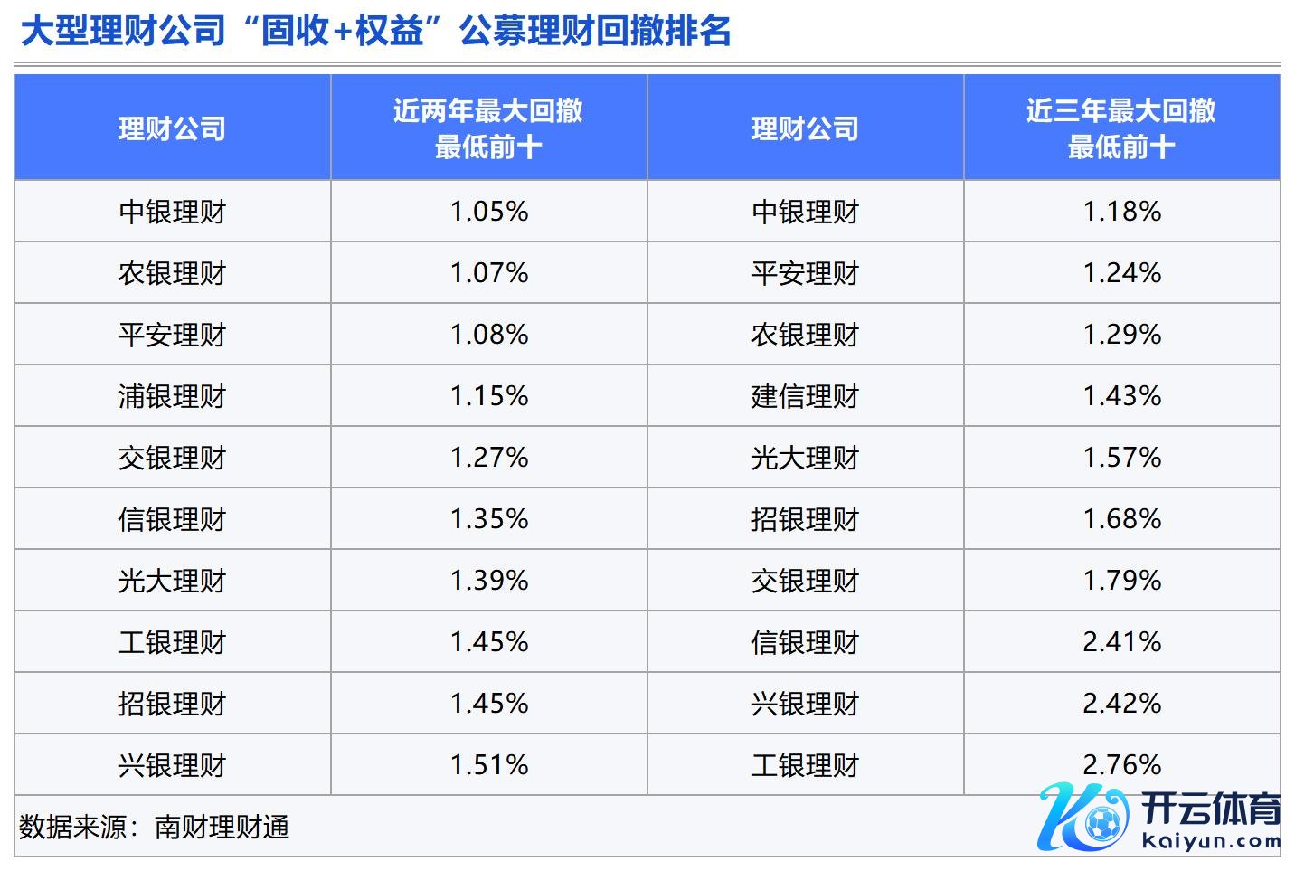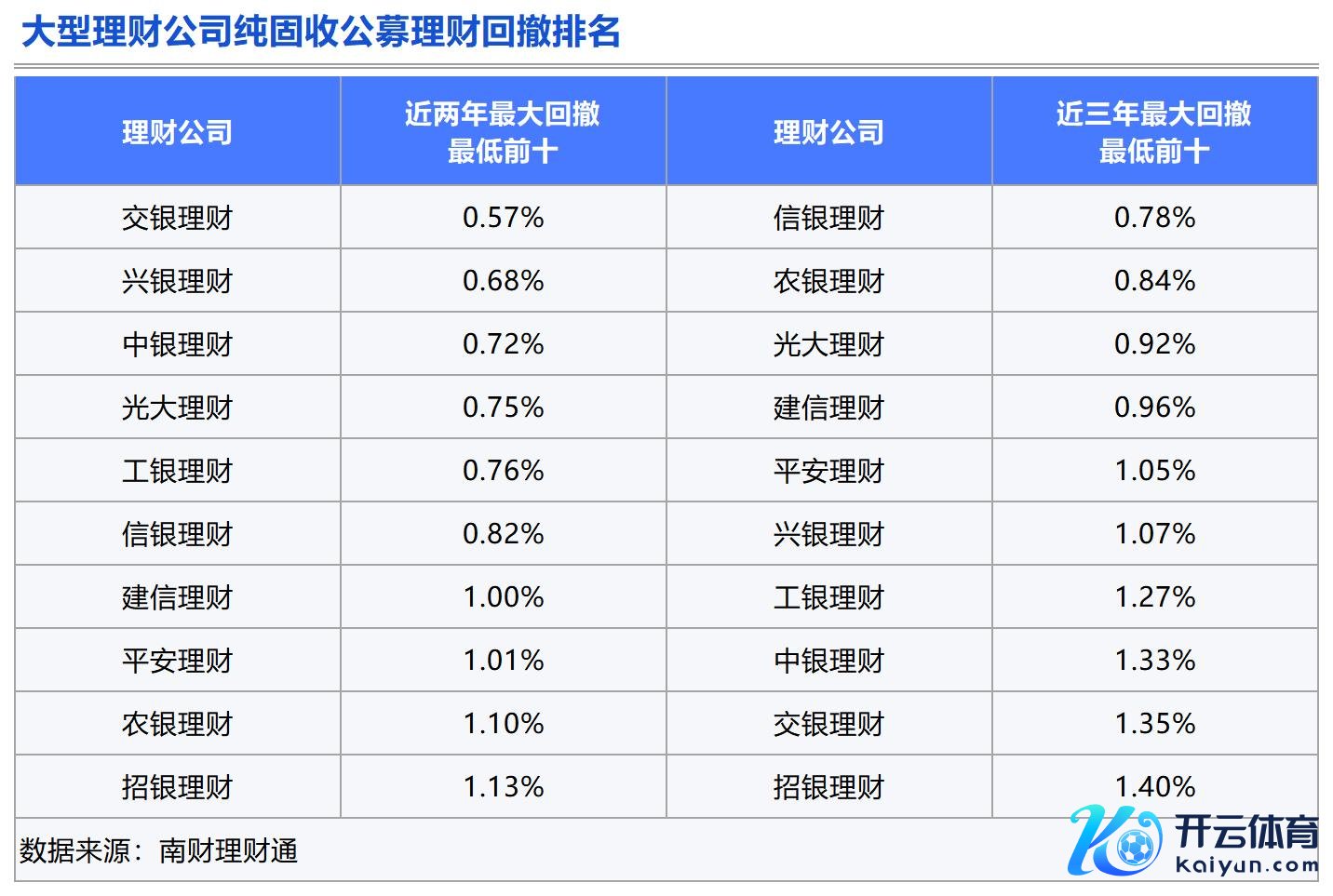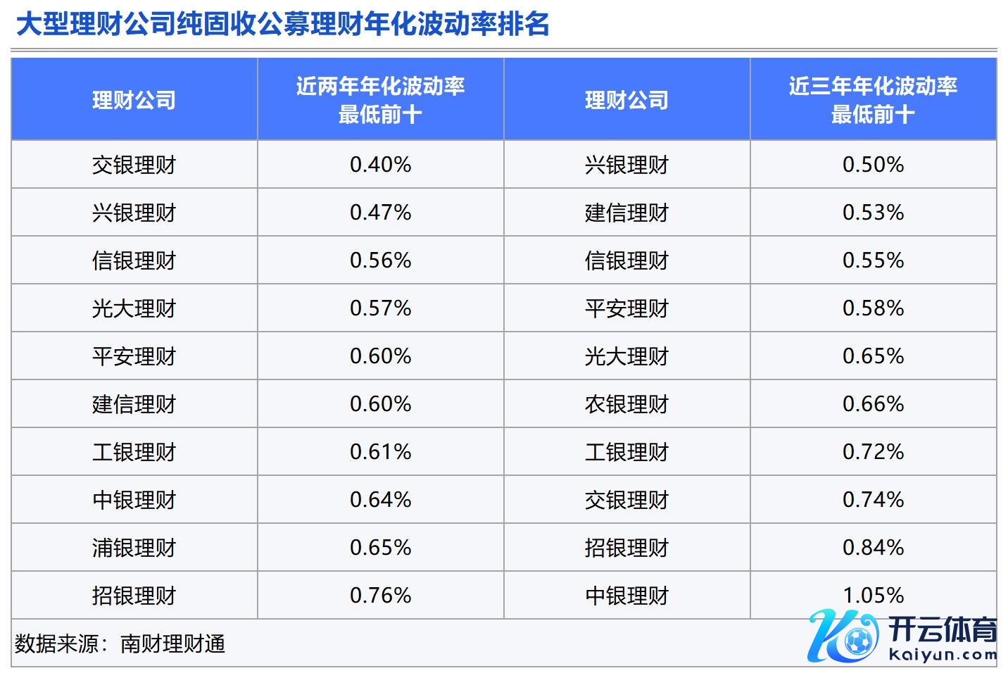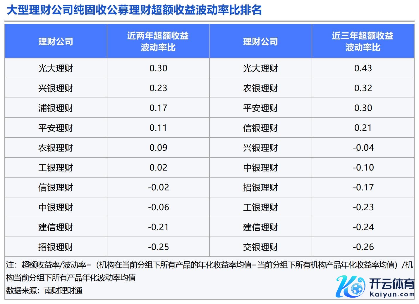 概括近2年、近3年年化波动率数据来看,兴银搭理、信银搭理、吉祥搭理和光大搭理纯固收居品抗波动才能永恒位于大型搭理公司前五位。