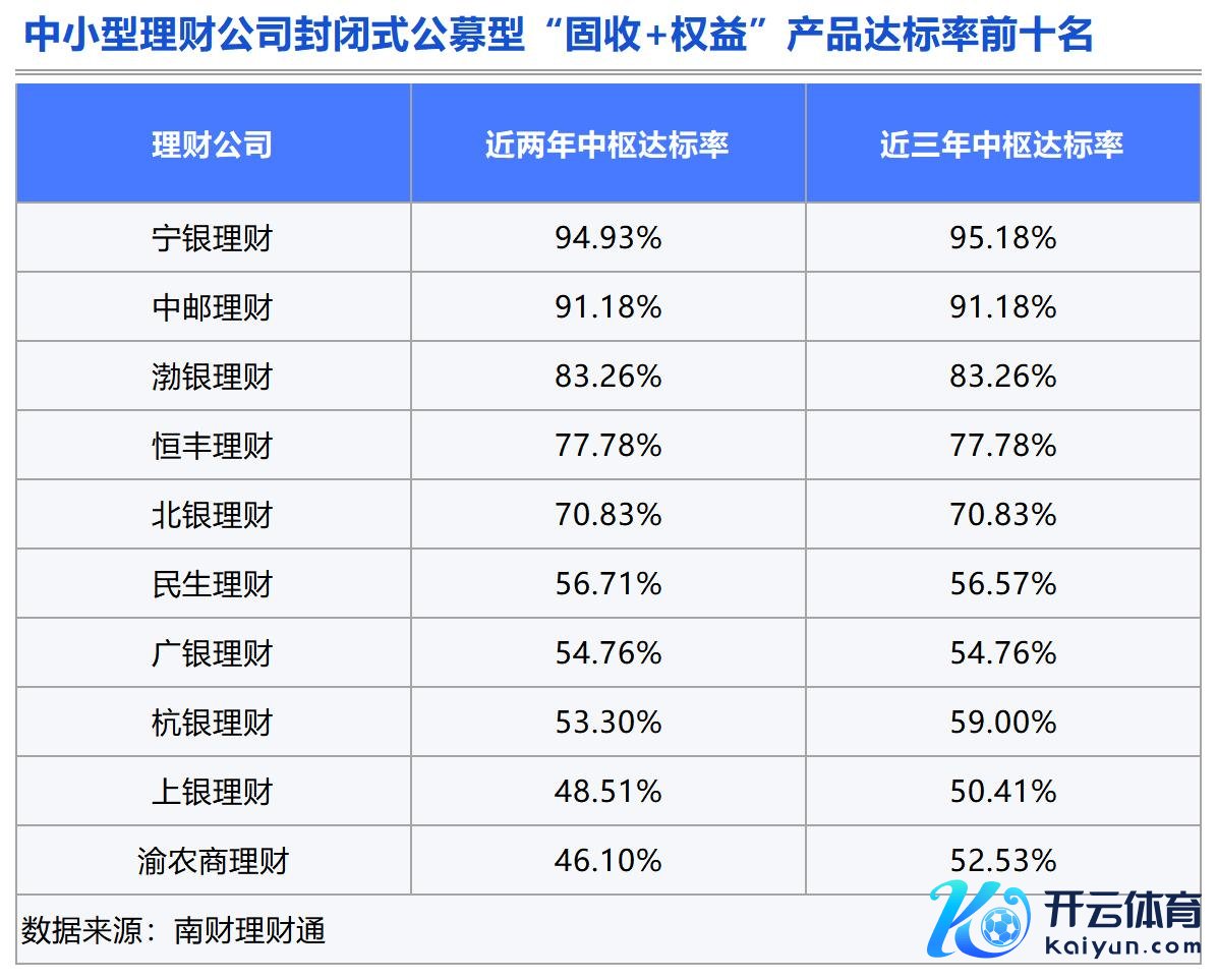 中微型搭理公司方面,宁银搭理、中邮搭理和渤银搭理“固收+权利”居品达标率位居前三,其中宁银搭理和中邮搭理近两年和近三年的达标率均卓越90%,渤银搭理、恒丰搭理和北银搭理达标率也均在70%以上。