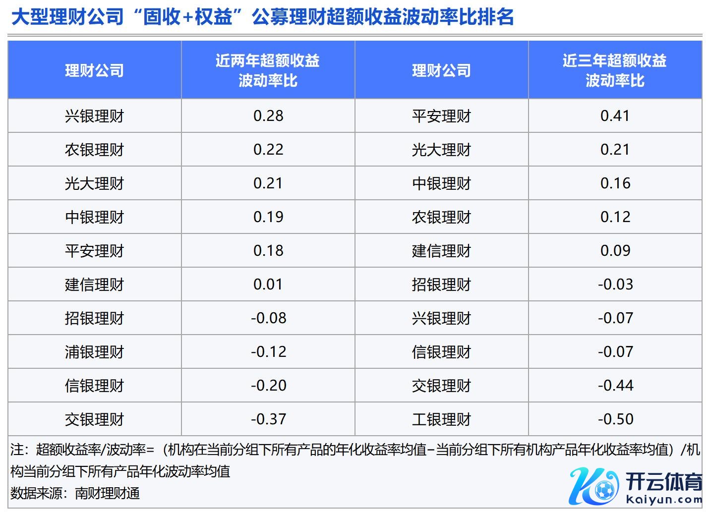 在大型搭理公司中,吉祥搭理、光大搭理、中银搭理、农银搭理和建信搭理“固收+权利”居品平均性价比较高。吉祥搭理近两年和近三年逾额收益波动率比分别为0.18和0.41,光大搭理近两年和近三年逾额收益波动率比分别为0.21和0.21,中银搭理近两年和近三年逾额收益波动率比分别为0.19和0.16。
