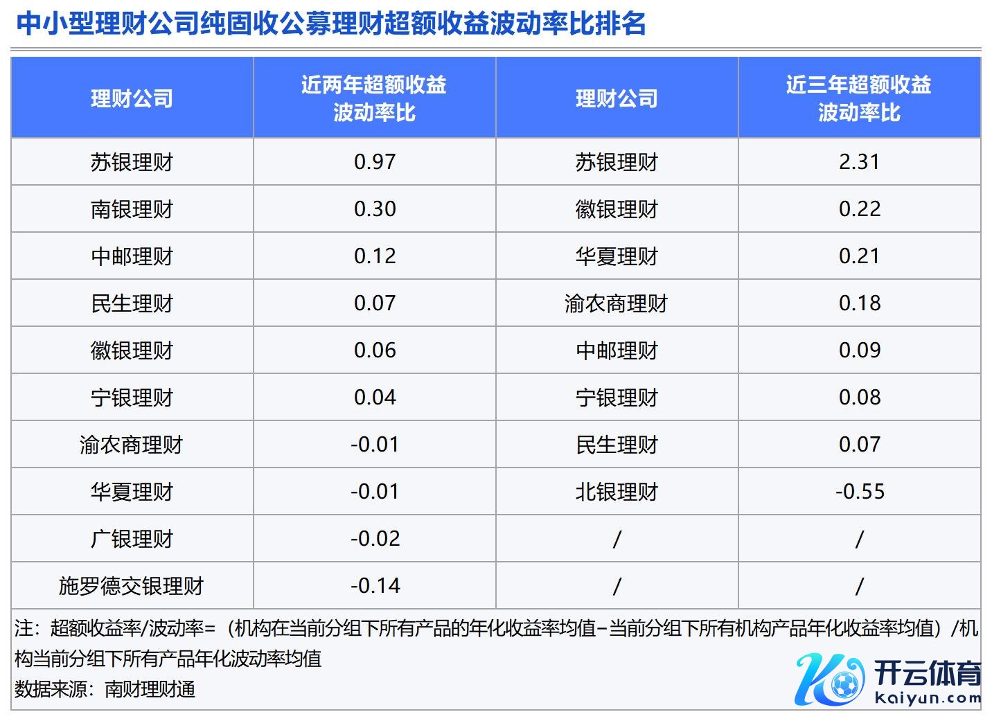 中微型搭理公司中,城商行搭理公司纯固收居品抗波动才能突显,宁银搭理近2年、近3年年化波动率均保管在仅0.24%,其宁欣固定收益类系列居品全体波动水平较低。此外,苏银搭理近2年、近3年年化波动率年化波动率均低于0.5%,且年化收益率在中微型搭理公司中有相对上风,概括施展较优。