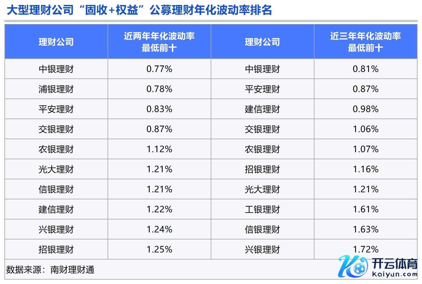受权利商场颤动行情影响,含权居品的波动率较纯固收居品更高。概括近2年、近3年“固收+权利”搭理居品年化波动率施展来看,大型搭理公司中,中银搭理和吉祥搭理“固收+权利”搭理居品波动率水平较低。