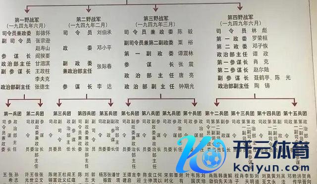 举例第一野战军第一兵团司令王震,第二野战军第三兵团司令陈锡联,第三野战军第九兵团司令宋时轮,第四野战军第十五兵团邓华。