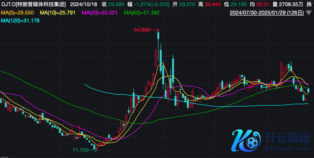 2024年9月24日,该股股价一度跌至11.75好意思元/股。但跟着大选不停鼓舞,看好特朗普的投资者不停押注,该股股价沿途上扬,10月30日一度摸高至54.68好意思元/股,区间涨幅高达365%。