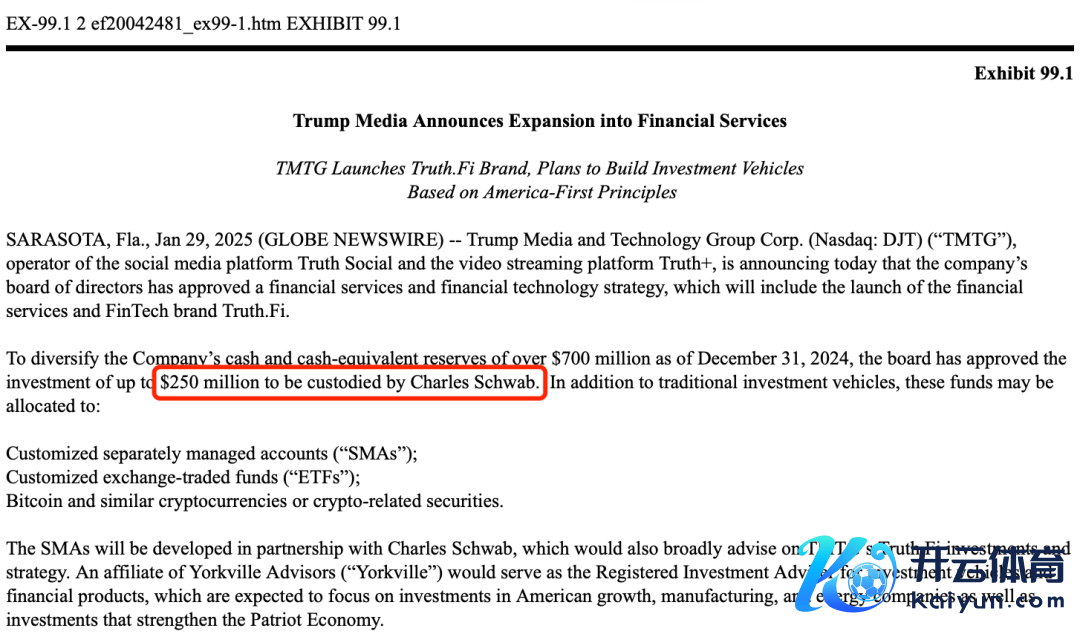 字据公告,摈弃2024年底,该公司领有卓著7亿好意思元的现款过甚等价物储备。为收尾储备的多元化,董事会已批准将最高2.5亿好意思元的资金交由嘉信搭理(Charles Schwab)托管。