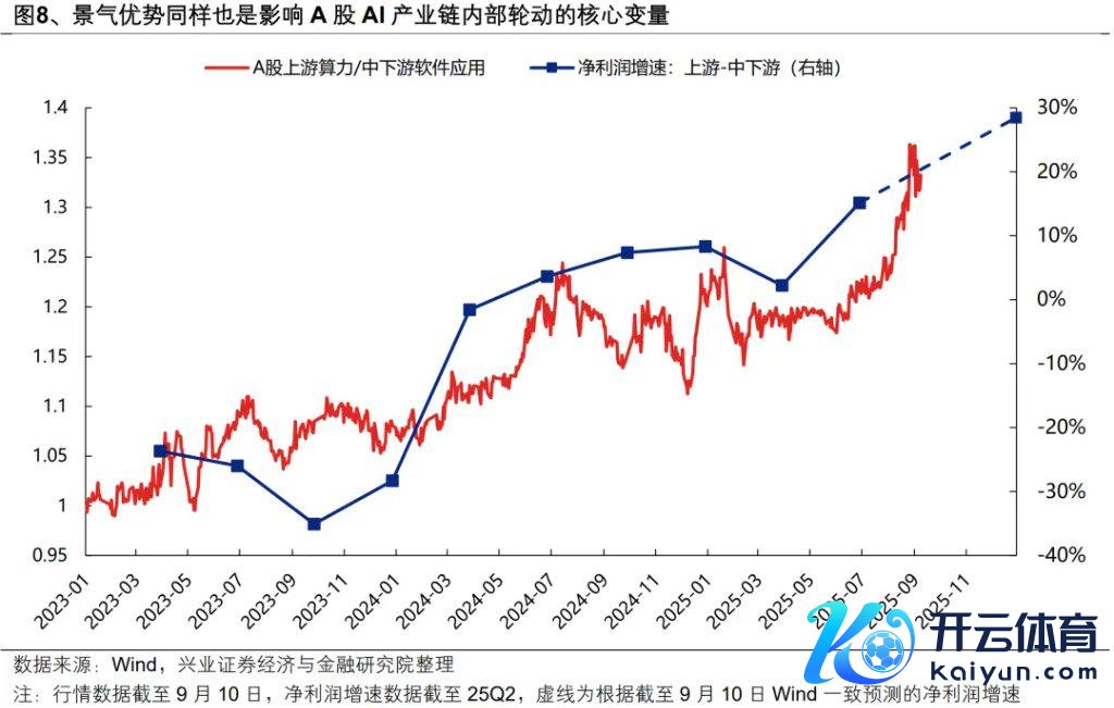 关于A股而言,岁首中卑鄙AI行情的演绎,除了DeeSeek落地的催化,中卑鄙窘境回转带来的事迹弹性亦然紧迫身分。而下半年以来,跟着算力产业链景气上风再次表示,带动上游算力再行跑赢。