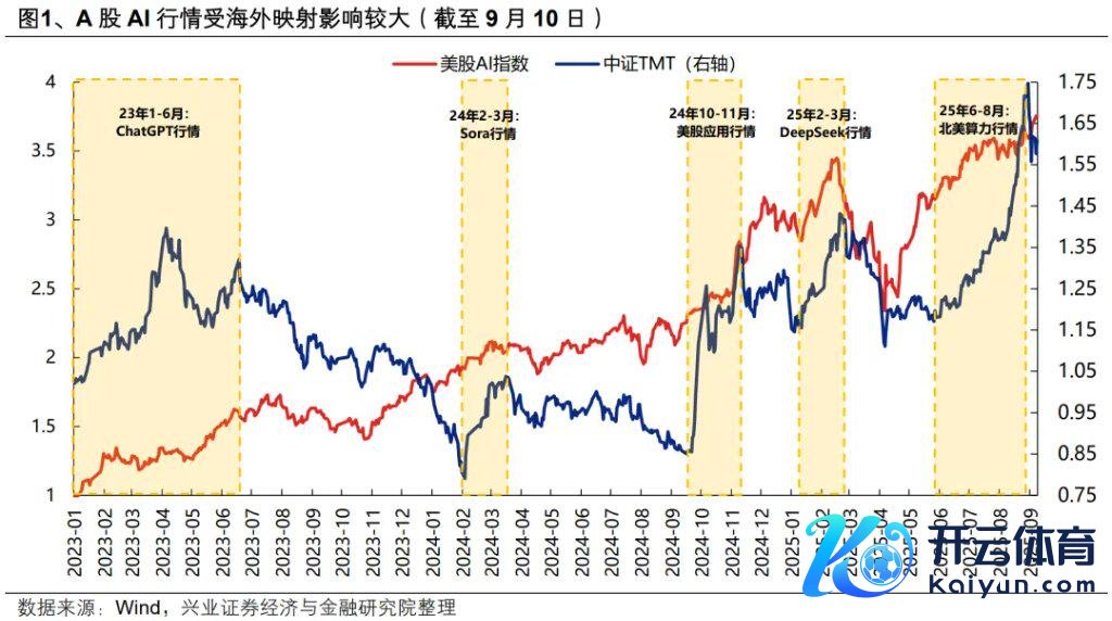 大众AI产业波浪下,2023年以来海表里AI行情通常共振演绎。归来2023年以来国内的AI行情,岂论是23岁首的ChatGPT行情、24岁首的Sora行情、24年四季度的AI哄骗行情、如故25年6月以来的北好意思算力行情,国内AI行情的演绎皆离不建国外映射的共振催化。