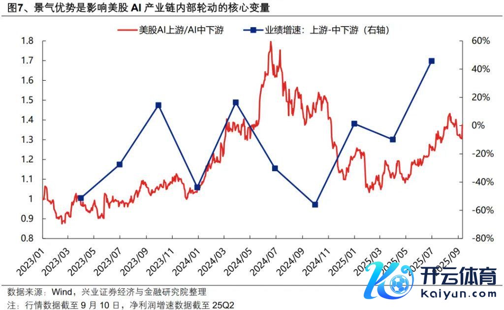 关于好意思股而言,24年下半年中卑鄙行情的演绎,骨子上在于中卑鄙公司的事迹开动已毕、相干于上游算力的盈利上风开动表示,驱动行情干线向中卑鄙切换。而本年下半年上游再行跑赢中卑鄙,背后亦然上游算力的盈利上风再行获得考证。