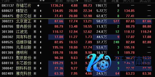 9月12日午后,存储芯片成见大幅拉升。上昼收盘时涨幅不到9%,午后拉升至“20cm”涨停板,最新股价创历史新高。北京君正上昼收盘时涨幅不到3%,午后一度涨超18%;精智达由涨幅不到9%,拉升至“20cm”涨停板;大幅拉升的还有江波龙、同有科技、佰维存储、朗科科技、聚辰股份等。
