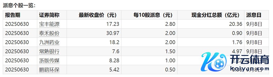 A股分成派息转增一览:6股当天股权登记开yun体育网
