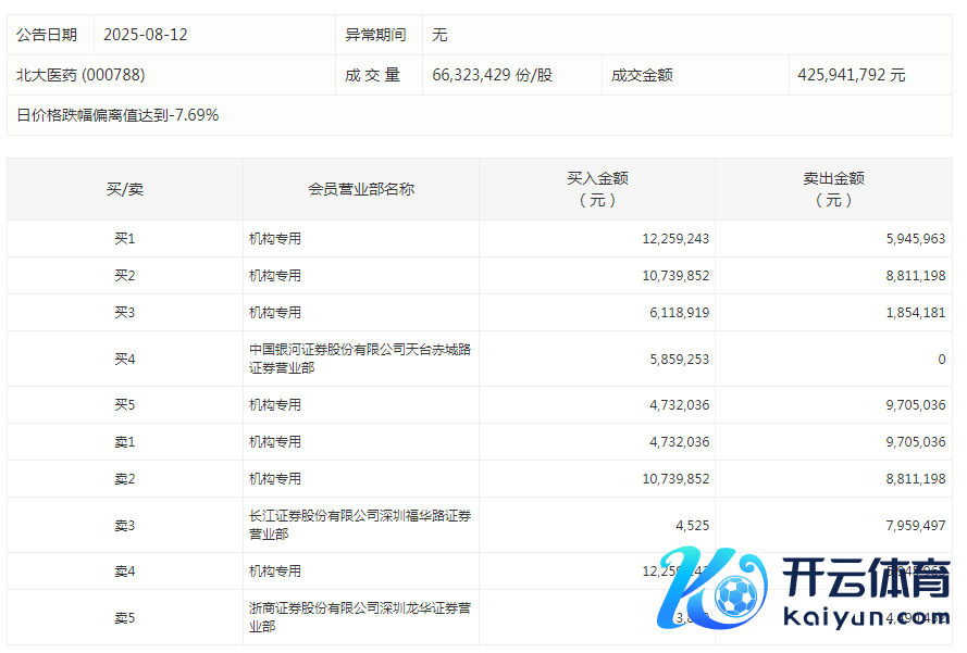 北大医药当天跌7.36% 4机构总共净买入753万元开云体育